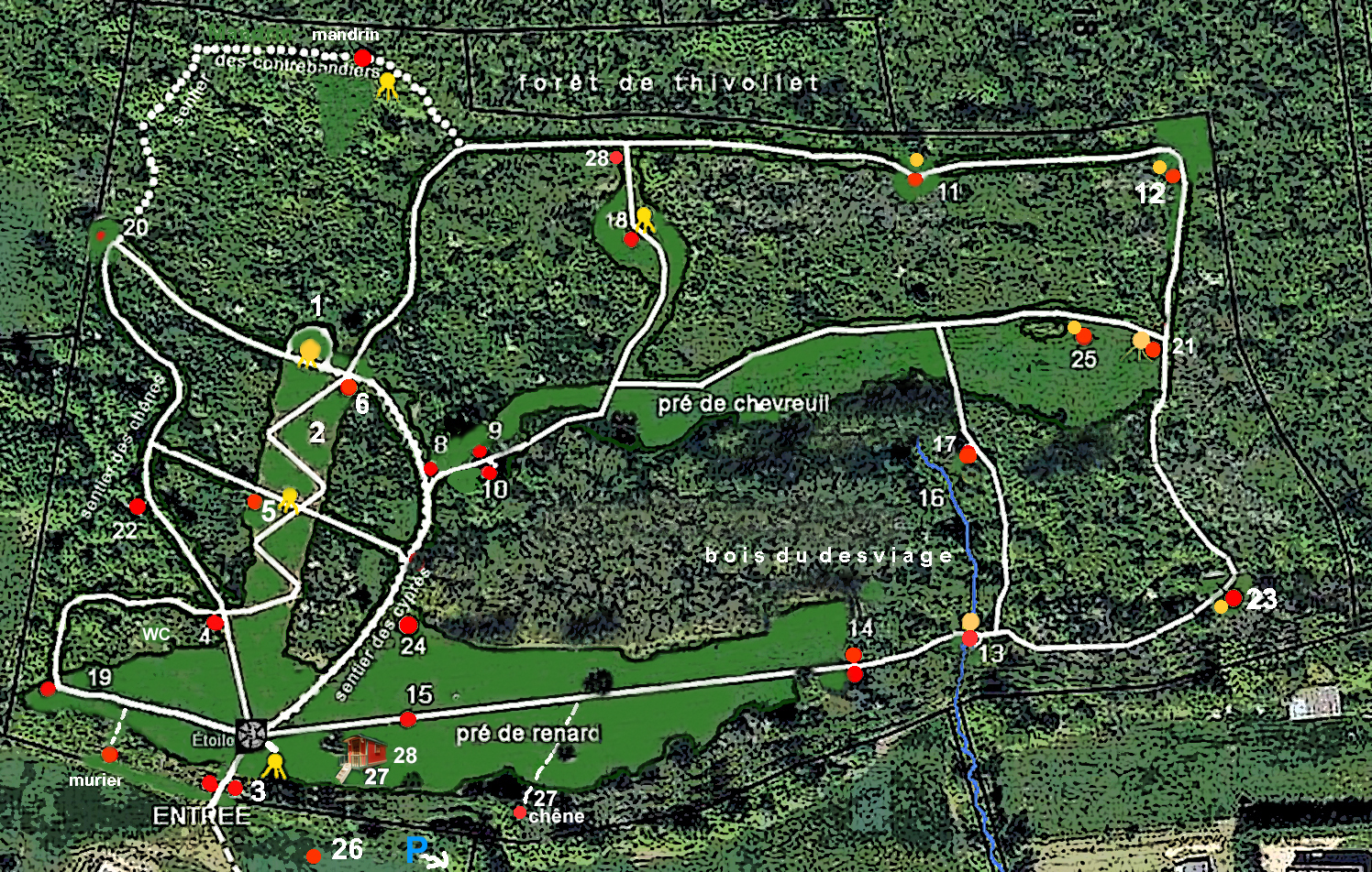 vom parkplatz aus geht man zum qin-pferd, hinter dem man rechts bis zum ÉTOILE hochgeht. rechts davon steht die rote roulotte mit infos zum park.